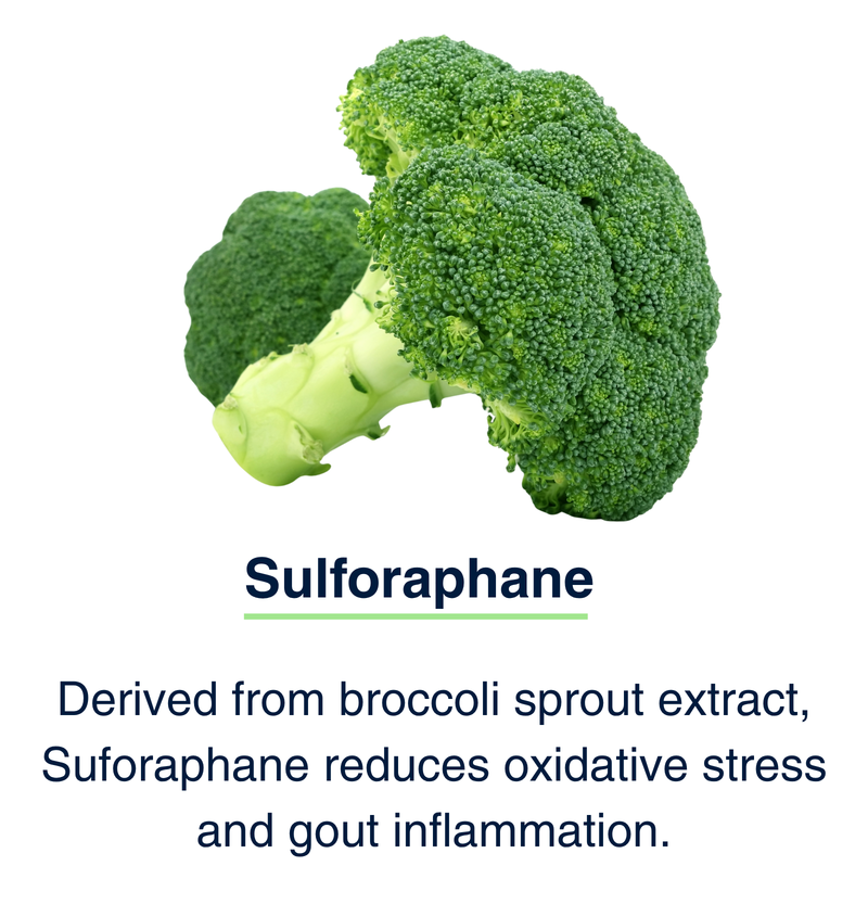 - Sulforaphane – a cutting-edge compound that stops gout inflammation before it starts.